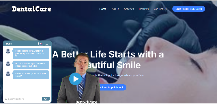 This is a dental website of a private dentist offering their services. Again, I didn’t want anything gimmicky, so I just placed some script on it to create a chat feature. The chat section features both a human spokesperson and a chat screen